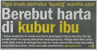 manusia ni biar nampak baik camner pun pasal harta sanggup berebut. itu pernah berlaku kpd sedara sy. masa org tua dia sakit x nak jaga tp bila bapa tu mati yg liat nak jaga ni plak paling tamak nak tuntut harta.....